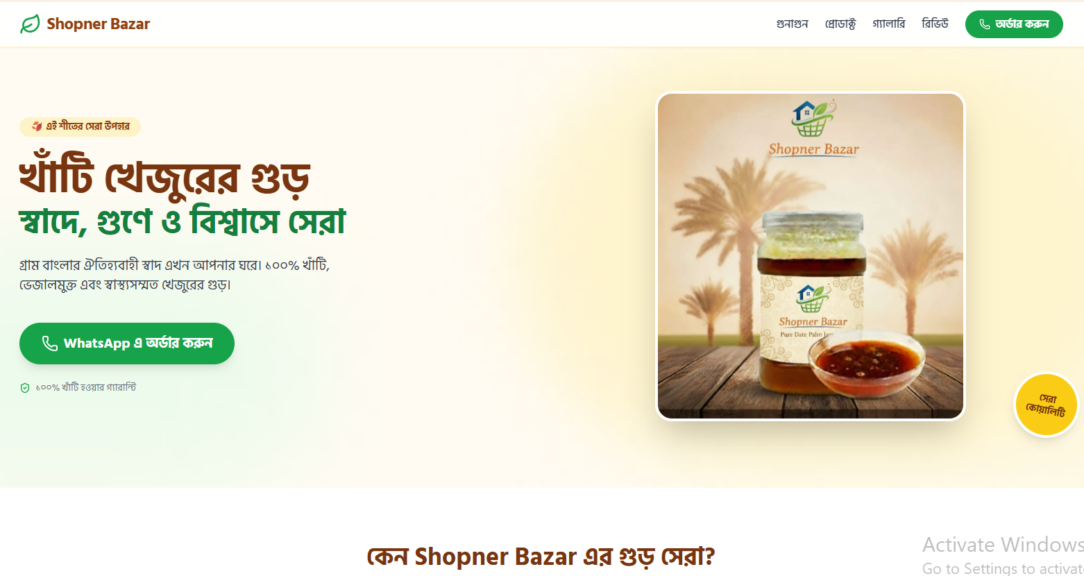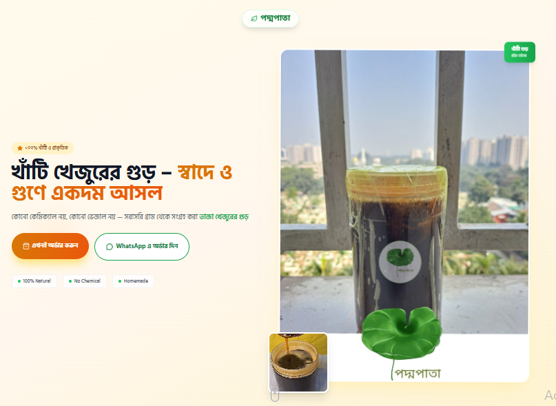 A conversion-focused product landing page designed for a premium date palm jaggery brand, featuring strong hero messaging, CTA integration, and mobile-optimized layout.
